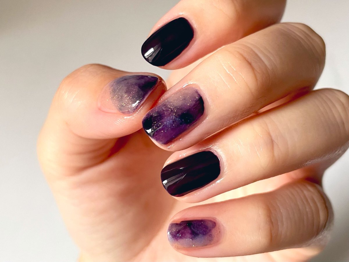 #指先に文学を纏う ネイルポリッシュ #夏目漱石 シリーズ 『#こころ』 粉々に砕け散ったこころの破片が沈む墨色(すみいろ) 重ね塗りの違いをご紹介💅 重ねるごとに濃く、破片が降り積もっていきます。 一度塗りは薄付きなので、はっきりした色味が苦手な方にも使いやすいカラーです。 pic.x.com/FisdTzmHQP