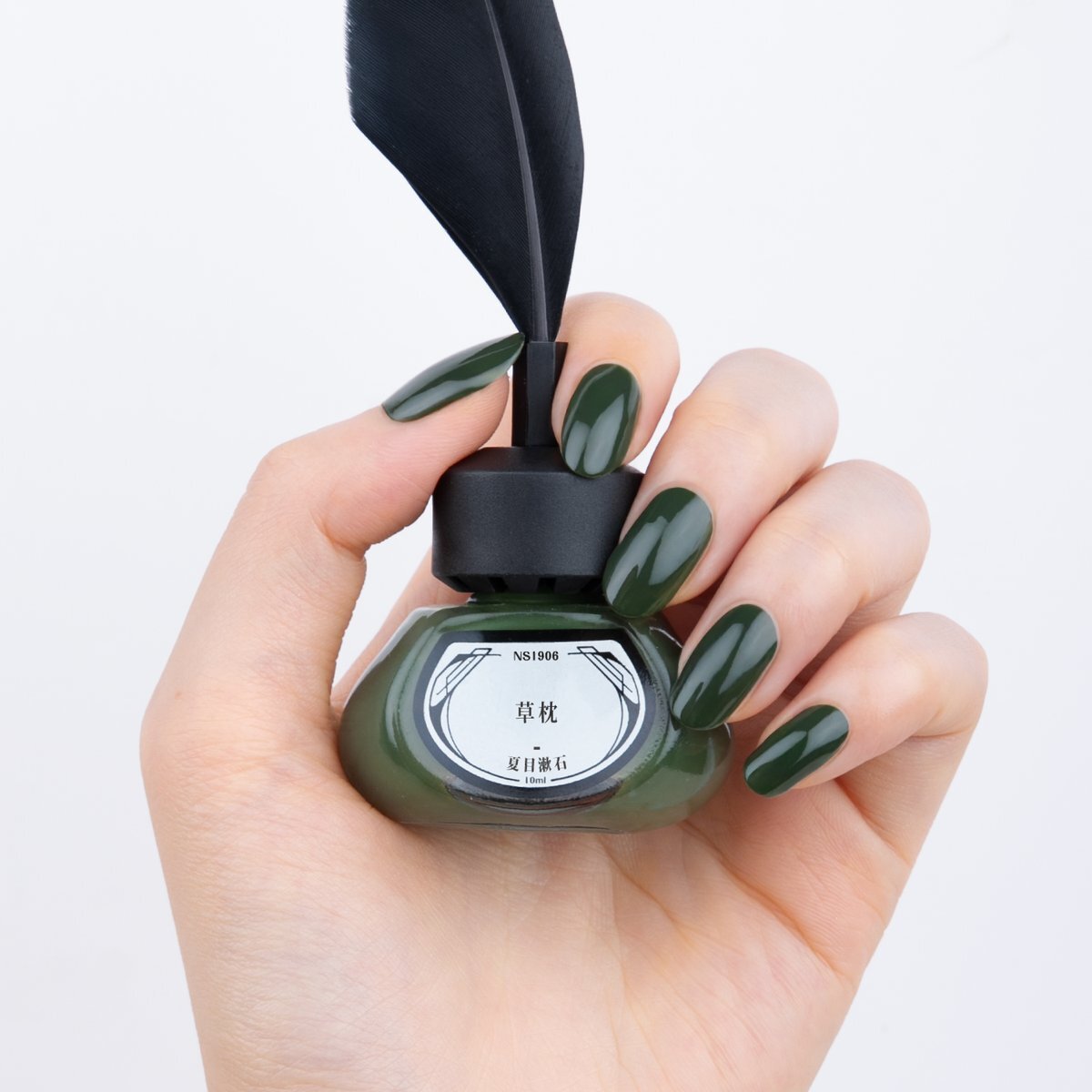 #指先に文学を纏う ネイルポリッシュ #夏目漱石 シリーズ 『#草枕』 人の世のしがらみを憂いつつ、人の情のなかに美を見出す思索の青丹色(あおにいろ) 重ね塗りの違いをご紹介💅 一度塗りでは透け感があり使いやすく、重ねることで深緑になるカラーです。 今の季節にもぴったり🎨 pic.x.com/TWndSQsx64