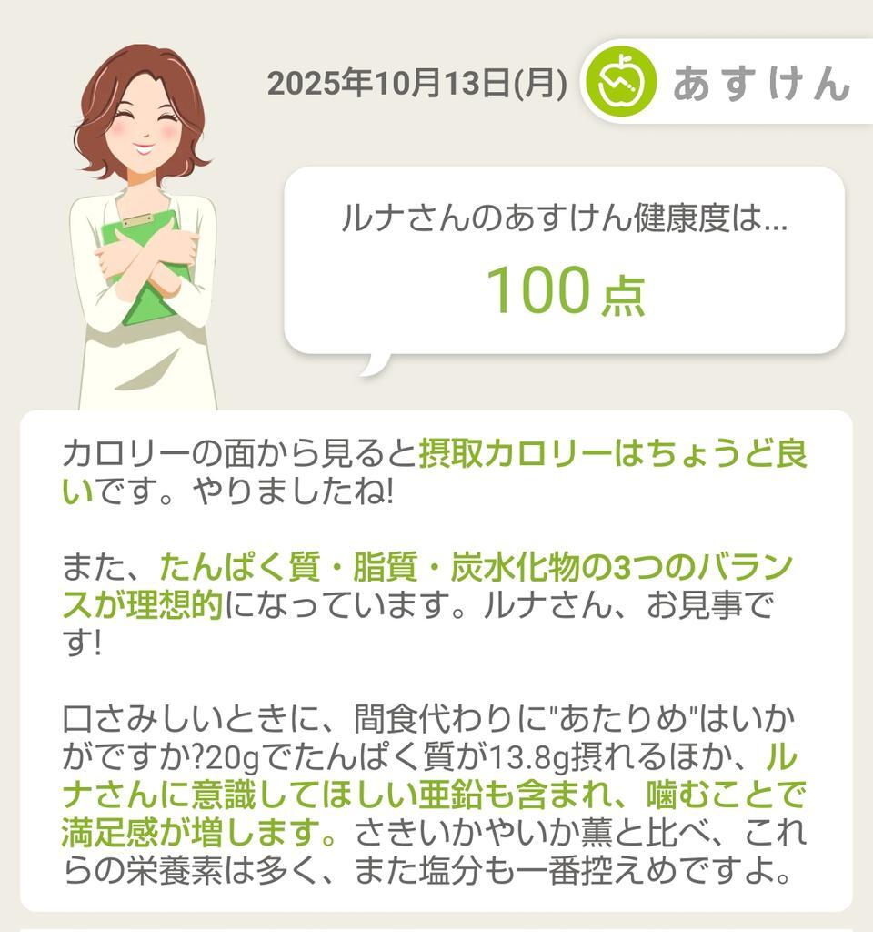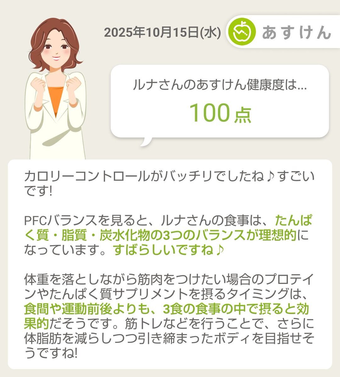 アドバイスをお伝えします。10月14日のあすけん健康度は100点です。 #あすけん #振り返り投稿 app.adjust.com/119iac7e <今日の日記>昨日まで冷戦状態だった私たち夫婦ですが、子どものこと(就職活動と進学・健康相談)で次第にわだかまりがとけ、「まっいいっか」の状態になりました。 pic.x.com/1SYrXMLPEp