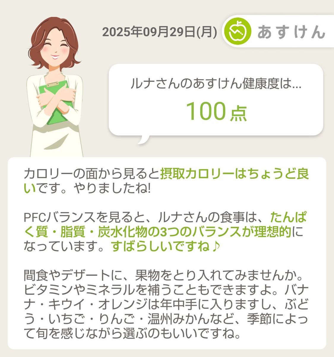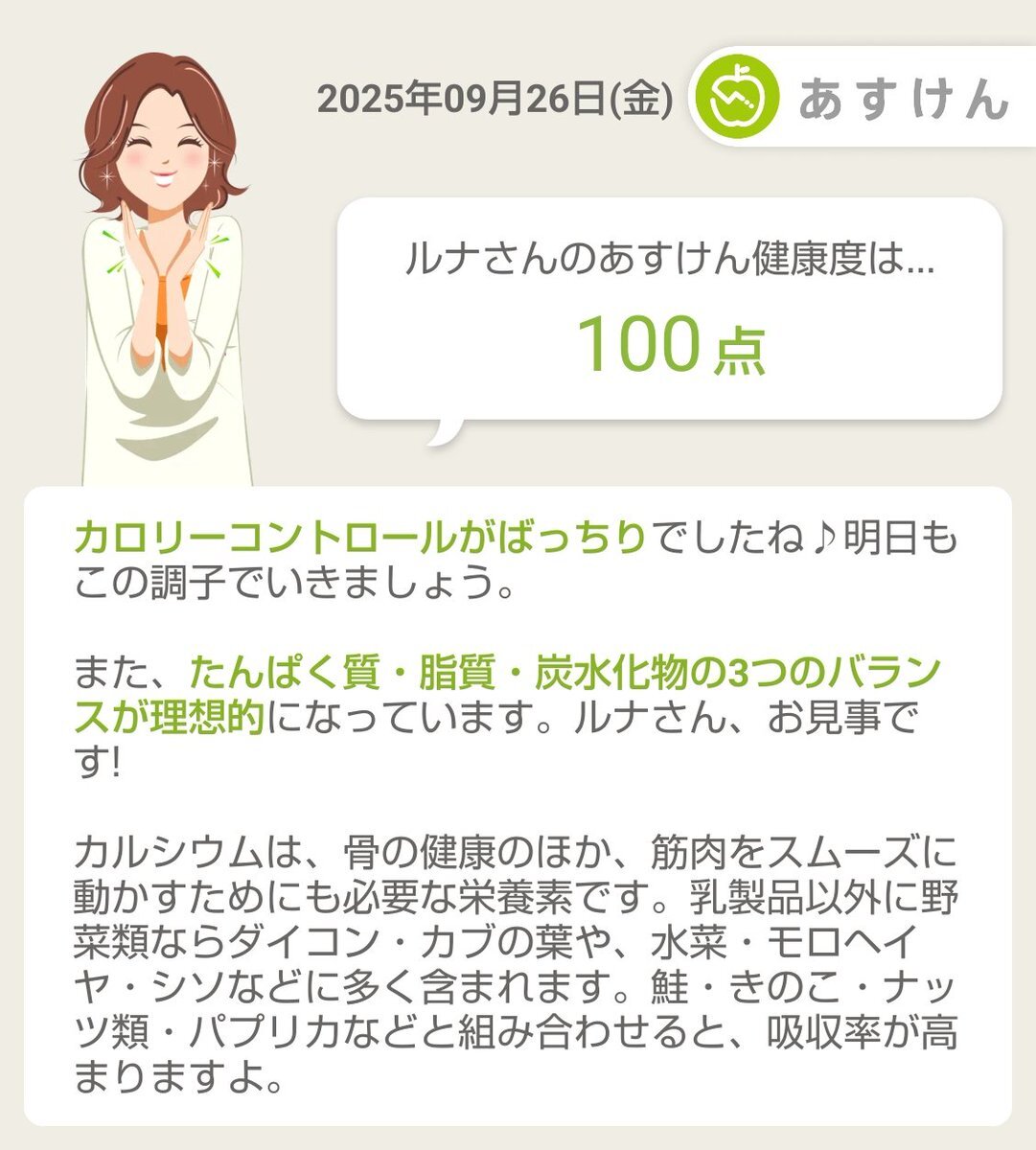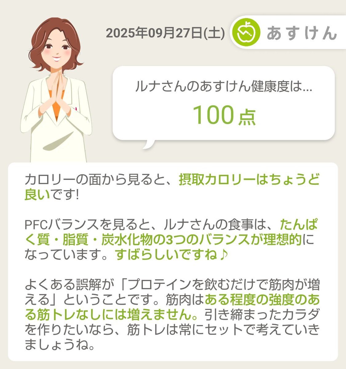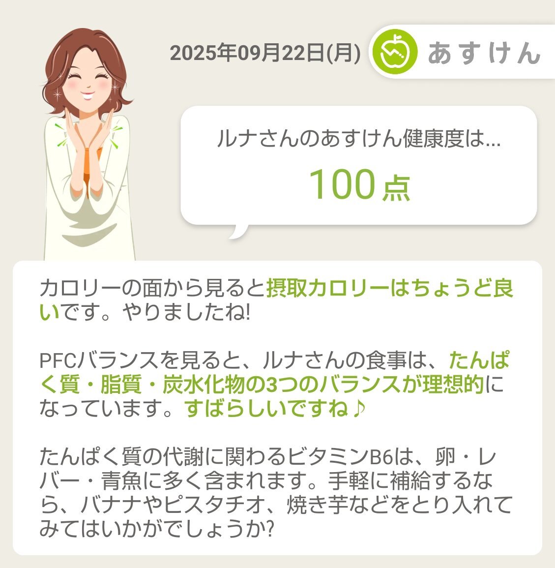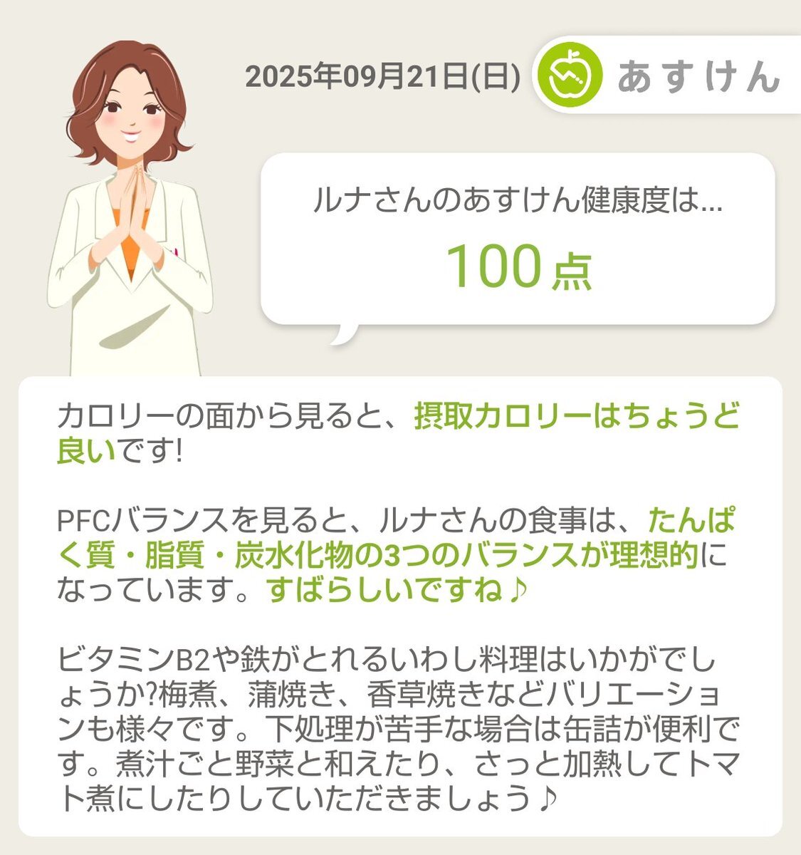 アドバイスをお伝えします。9月23日のあすけん健康度は100点です。 #あすけん #振り返り投稿 app.adjust.com/119iac7e <今日の日記>お彼岸なので実家へお線香をあげに。実母と妹とたくさんお話しした。今日はおいしいものいっぱい食べた。*朝マック *ゴーヤチャンプル定食 食べすぎだ~! pic.x.com/a3p5cuX12f