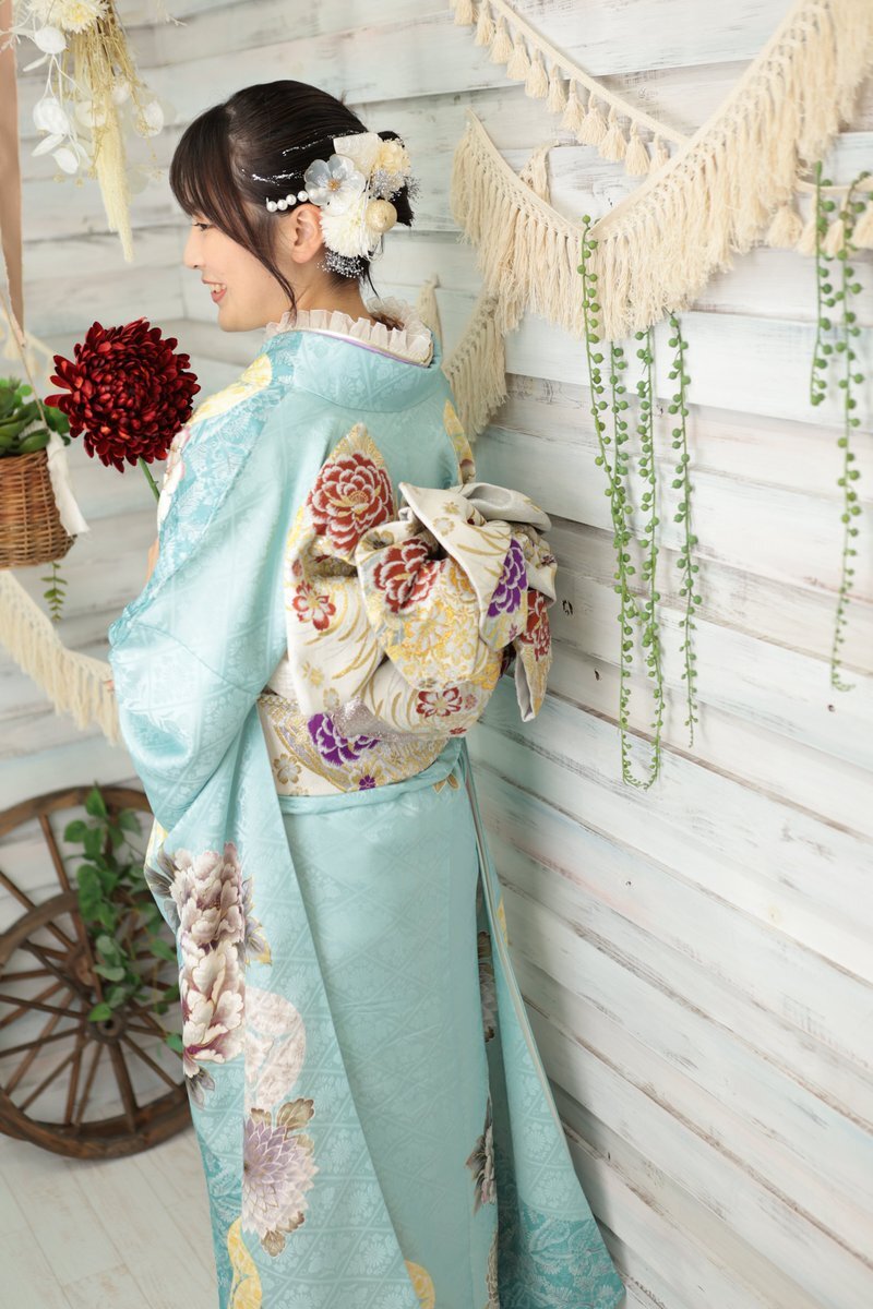 おはようございます☀️ ✨振袖コーデ紹介✨ 鮮やかな水色の振袖に、大輪の花模様が華やかに咲き誇るコーディネート。 帯にはゴールドをベースに赤や紫を差し色に入れて、品のある華やかさを演出しています🌸 #振袖 #振袖コーデ #成人式振袖 #振袖前撮り #振袖小物 #成人式準備 #京都もなみ pic.x.com/KcSRBWBMz7