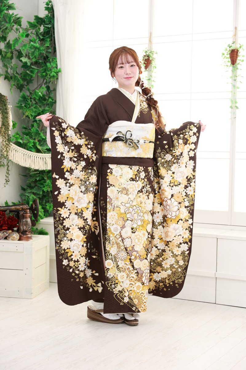 本日もありがとうございました😊 秋らしい茶色の振袖コーデをご紹介🍂 大人っぽく華やかな印象です✨ 小物は色を統一して令和らしく♪ #振袖コーデ #振袖前撮り #成人式振袖 pic.x.com/FciuaZGSm6