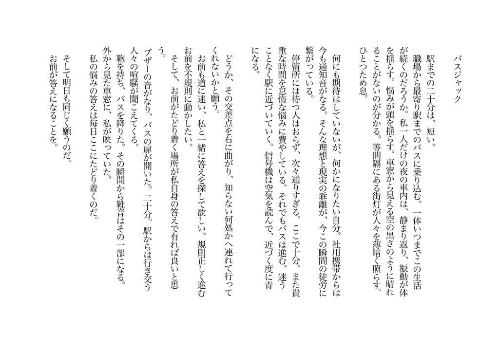 タイトル「バスジャック」 短いお話です🙇‍♀️ #掌編 #小説 pic.x.com/uIiAdi28YC