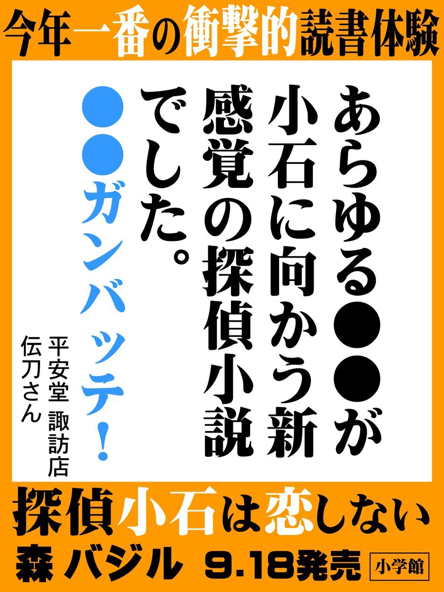 \今年一番の衝撃的読書体験!/ 『探偵小石は恋しない』(森バジル) 大反響につき続々重版決定です🎉🎉 全国の書店員様からいただいたご感想を紹介! 本日は平安堂 諏訪店の伝刀さんの感想です📖 ⚠️ネタバレ“全開”の感想は特設サイトまで⚠️ shogakukan.co.jp/pr/tanteikoish… #探偵小石は恋しない #森バジル pic.x.com/1U1DPmykZl