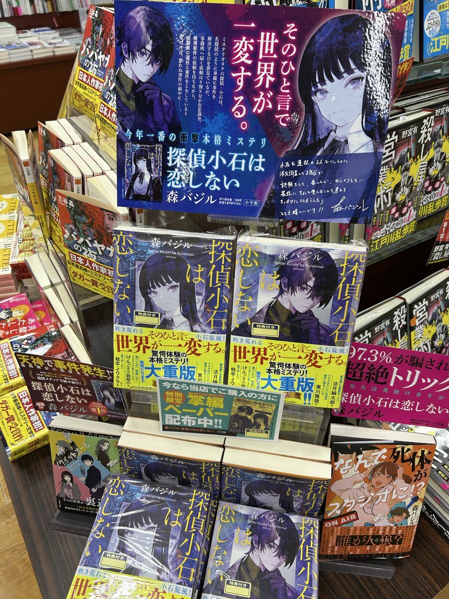【書籍】品切れしてました森バジル先生の『探偵小石は恋しない』入荷しました! テンポよく展開するミステリ、ぜひ読んでください‼️#探偵小石は恋しない #森バジル pic.x.com/ElkNFkejIp