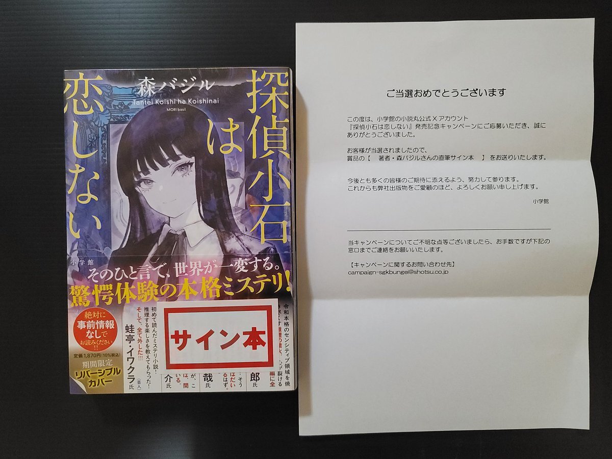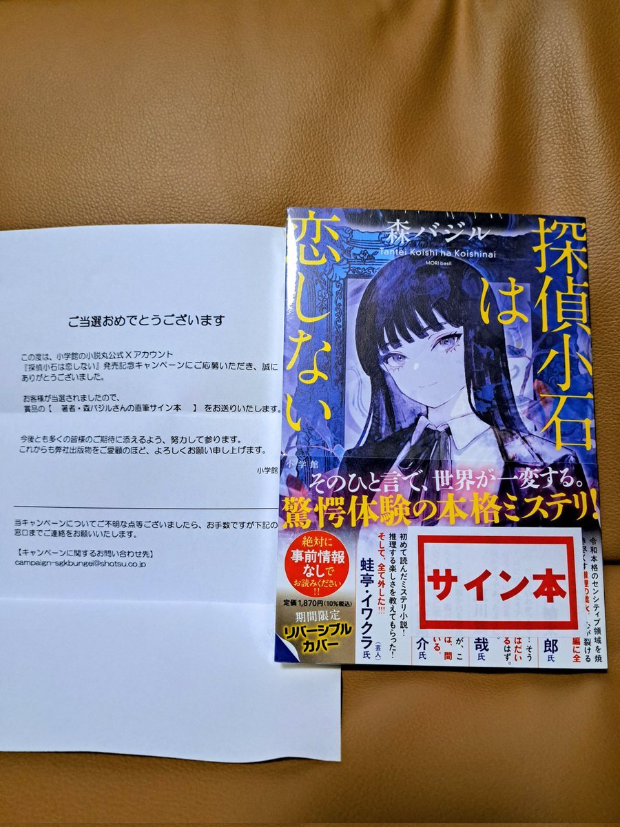 発売記念キャンペーンに当選して、 #森バジル 先生の「#探偵小石は恋しない」が届きました!! サイン本だし、期間限定のリバーシブルカバーだし、めちゃくちゃ気になってた作品なので、嬉しいです! 小学館さま、森バジル先生、ありがとうございます! 大切に読みます!! pic.x.com/6cMp2uXhTR