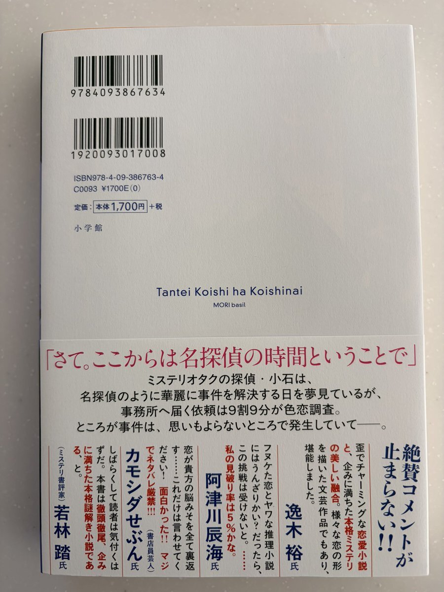 ミステリーマニアの私立探偵・小石は名探偵のような華麗な推理案件を待ち望んでいるが、不倫や浮気調査ばかり舞い込んでくる 本格ミステリ たくさんの伏線回収 ミステリ好きにはたまらない仕かけに 驚き、めちゃくちゃ楽しめた すごい面白かった ラストも好き #探偵小石は恋しない #森バジル #読了 pic.x.com/k0lp8qkKcj