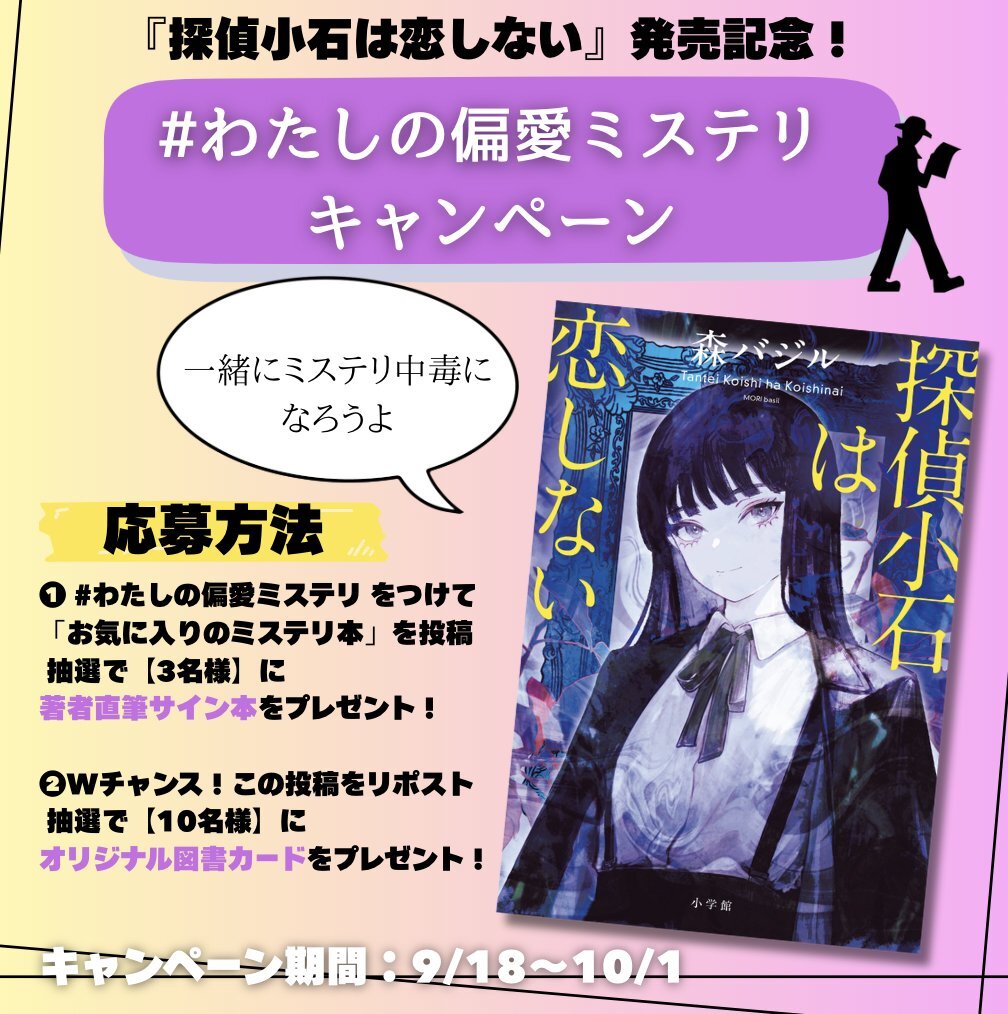 フォロー&リポストで図書カード1000円が当たる🎁 ✨『#探偵小石は恋しない』発売記念✨ 📚#わたしの偏愛ミステリ キャンペーン📚 主人公・探偵小石は重度のミステリオタク。いつか小説の名探偵のように華麗に事件を解決する日を夢見ているが――!?小石に負けない、ミステリファンのみなさま🕵🏼‍♀️