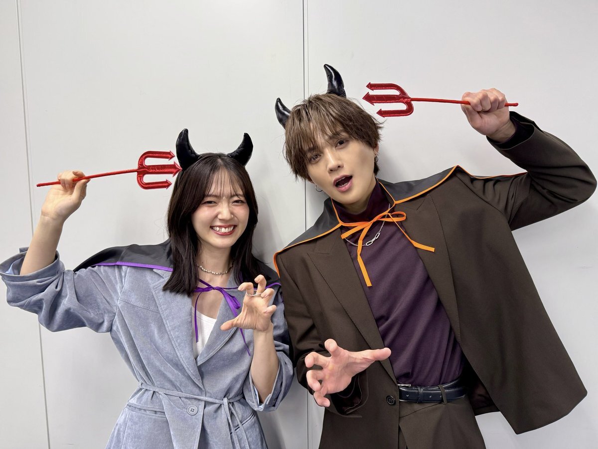 可愛いい2人が 🎃Happy Halloween🎃 あ、勇征くんのマントうちの子つけてたやつと一緒だ(色も)🤭 もう置いてないか〜 #推しが上司 #鈴木愛理 #八木勇征 #FANTASTICS x.com/tx_oshi/status…