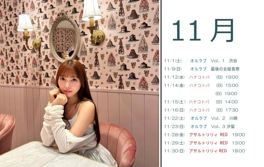 11月 推しに会える日🩵 紳士淑女の皆様  スケジュール 押さえてくださいね〜 #羽野瑠華 #オルラブ #ハナコトバ #アサルトリリィ #アイカツ #推しが可愛すぎる pic.x.com/OKswFb4clH