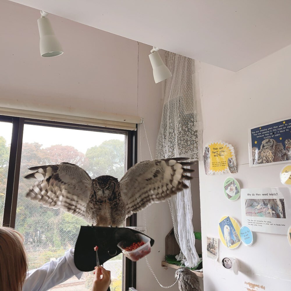 【原宿店】 スピカちゃんのフライト訓練🦉✈️✨ スピカ『ボクだってやればできる子✨』 #アフリカワシミミズク #可愛い #もふもふ #推しが尊い #owlcafe pic.x.com/uTIcZpDQfK