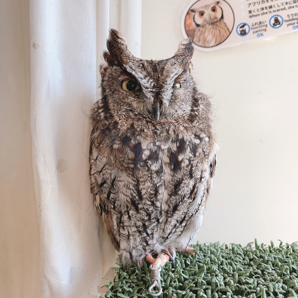 【原宿店】 珍しく警戒強めのムーさん 視線の先には… ボブ君が⁉️ 実は、ボブ君が苦手なムーさんでした🦉💦 ムタ『ボブ君おっきい💦』 #ニシアメリカオオコノハズク #可愛い #もふもふ #推しが尊い #owlcafe pic.x.com/1lTUY6iDqG