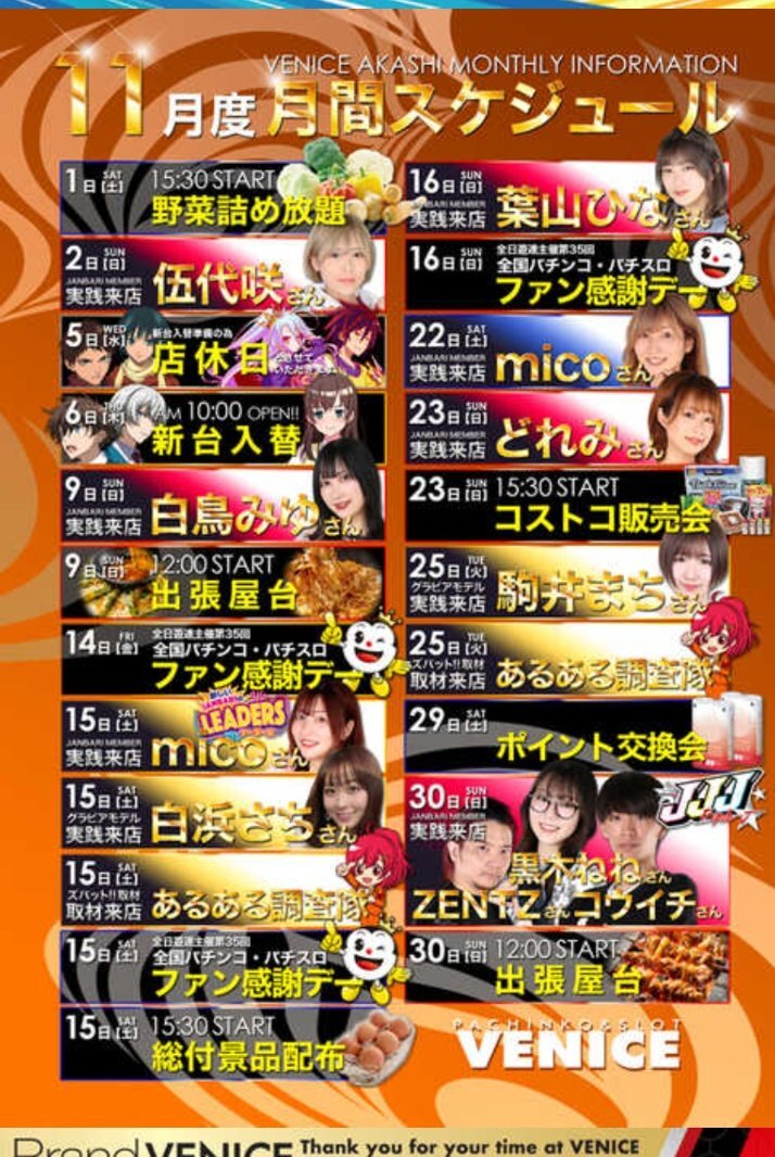 明日11/15は兵庫県明石市 #ベニス明石店 さんに #mico ちゃんが 朝イチから来店予定です😄 #新しいジャンバリのリーダーズ で気合いいっぱいの #mico ちゃんと楽しい時間を過ごしませんか? #白浜さち (@sa2n_gt) さんも来店予定です お近くの方お時間の合う方は是非‼️ #推しが尊い #PR pic.x.com/bHlujkzxlv