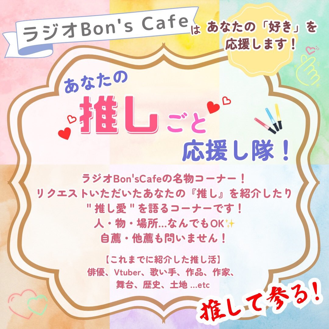 今日11月4日は #いい推しの日 \(^o^)/ #推しごと 推進委員会の我々、ラジオBon'sCafe #ボーンズカフェ は、あなたの推しを応援します! リクエスト曲やメッセージ、お待ちしておりますぞ〜📻🧡 pic.x.com/moNHWtRORb