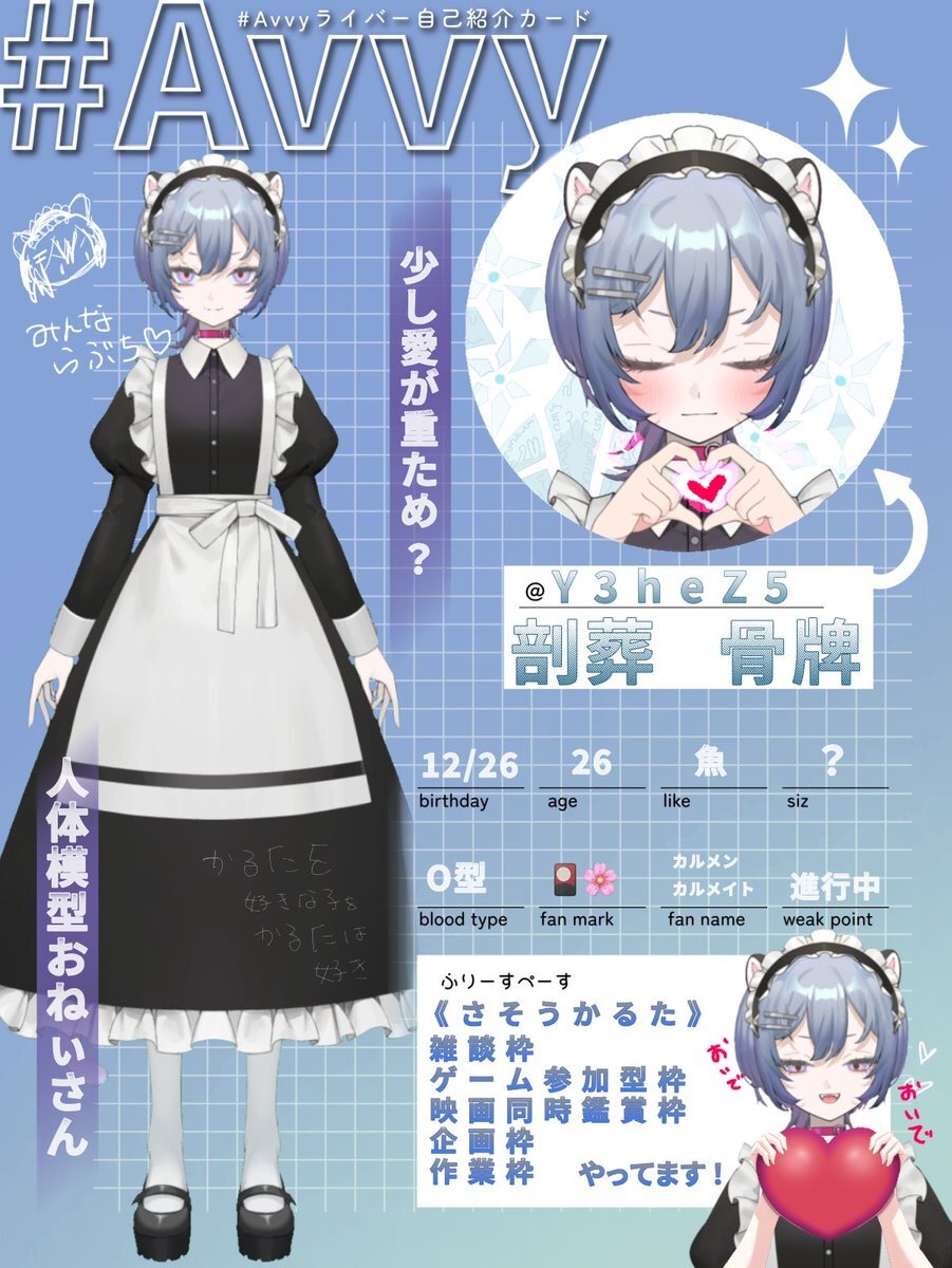 久しぶりにタグ🏷𓈒𓏸︎ 人体模型の怪異。 日常にほんの少し闇のスパイスを🫶 寂しい僕に会いにきてね ずっと一緒よ #10月のVTuberフォロー祭り #Avvyユーザーさんと繋がりたい #avvyライバー自己紹介カード #推し不在さんと繋がりたい #Vtuber推し探しにどうぞ #推してください