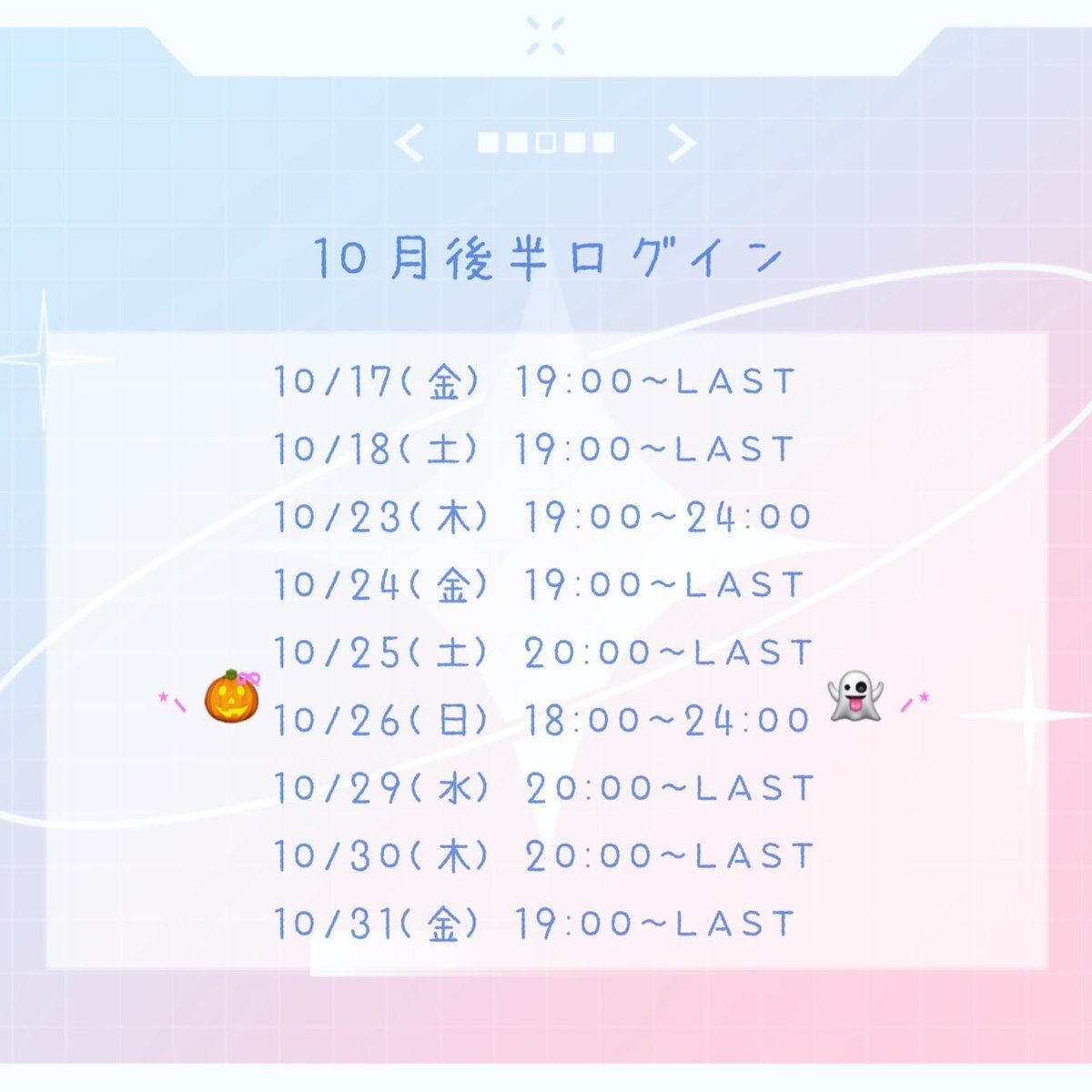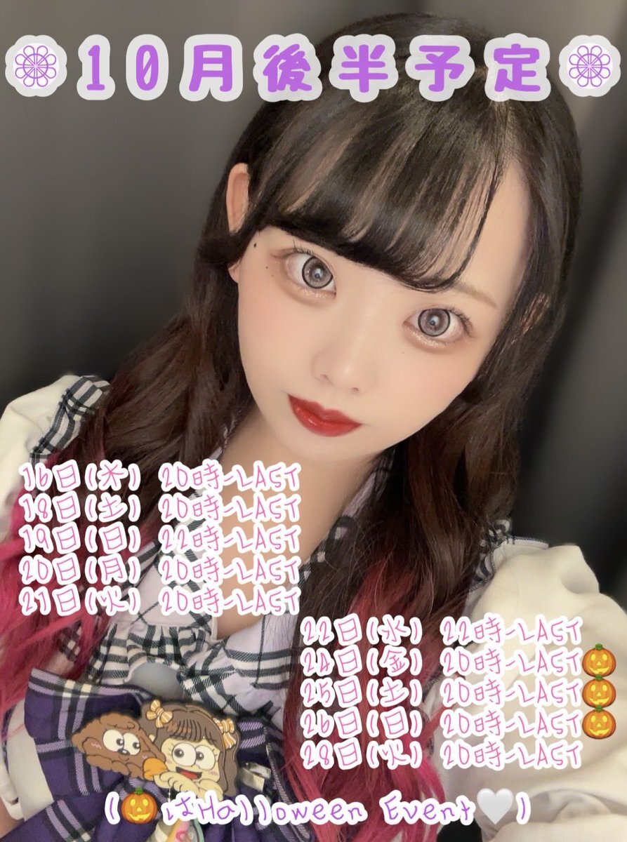 ꒰ঌ10月後半ログイン予定໒꒱ 10/25,26はハロウィンイベント👻🍭 お誕生日のお祝いもまだまだ受け付けてるよ(՞っ ̫ _՞) たくさん会いに来てね🌟 #コンカフェ #コンカフェキャスト #コンカフェ営業 #吉祥寺 #吉祥寺コンカフェ #いいね返し #自撮り界隈 #推してください pic.x.com/yi36S3VDXh