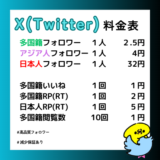 ✨𝕏 Twitter フォロワー・いいね・RT販売中 切りの良い数字でなくても承れます スピーディーにアカウントを成長させませんか? 🐤こちらは営業用アカウントのため ご依頼ご相談は@osu72134 💌 DM or LINE まで pic.x.com/kSbii0N6ij #メンヘラさんと繋がりたい #推してください #副業 #P活