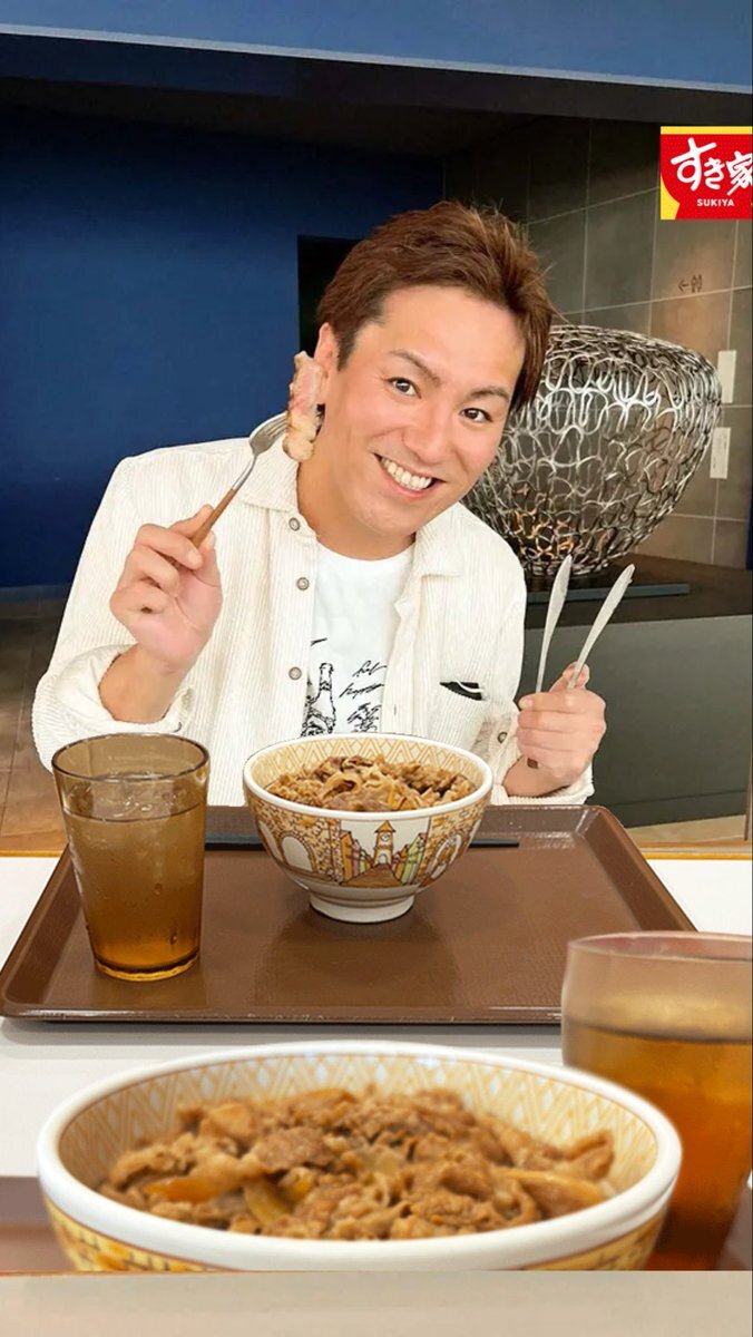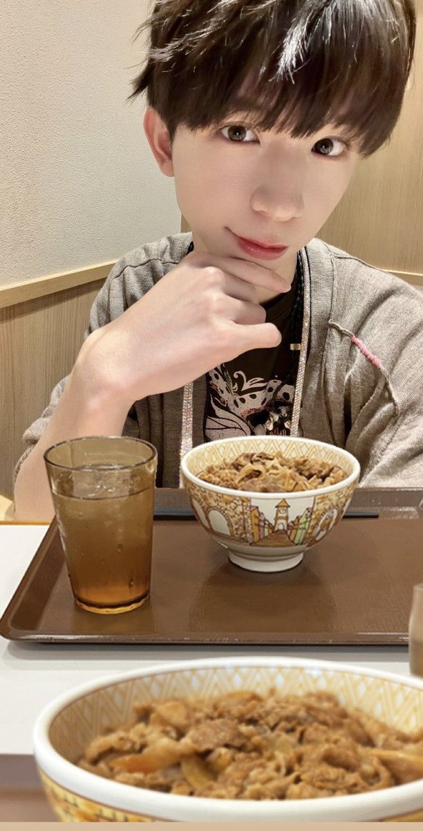 「誰が一番早く牛丼完食できるか…勝負だ!!!」 「負けたやつ、次の牛丼おごりな〜!」 的な🧡💛🩷❤️💜💚高校生ノリ(笑) #推しとすき家 #MATSURI #松岡卓弥 pic.x.com/mZvQfN1yJc