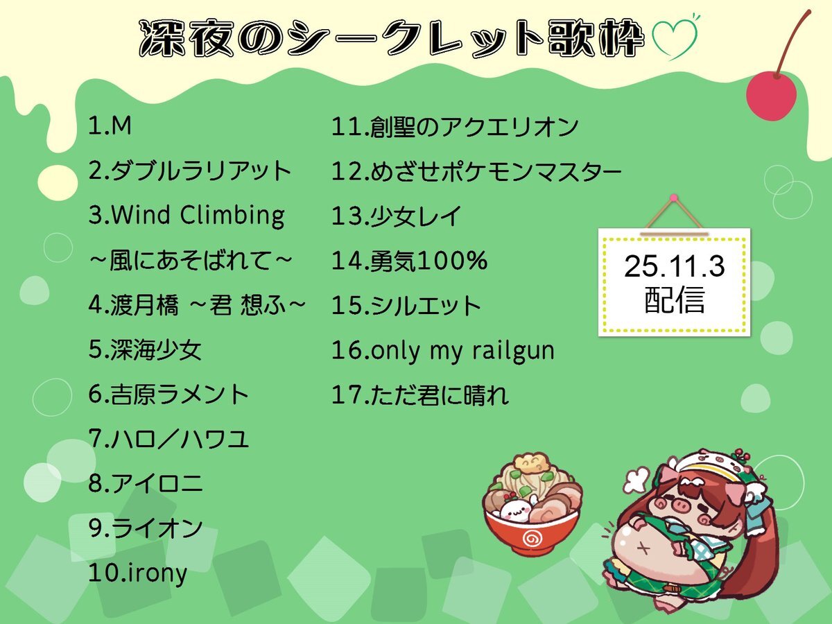 #最高Vtuber #推しマガセトリ ᝰ✍︎꙳⋆ ~セトリ~ 風になる/つじあやの 蝶々結び/Aimer アフターダーク/ASIAN KUNG-FU GENERATION This Love/アンジェラ・アキ 11/13 Singing Stream x.com/amane_none/sta…