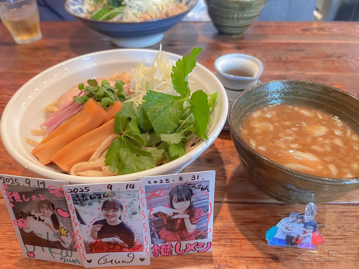 今日の推し麺は宇都宮駅前トナリエ1Fにあるつけ麺らーめん春樹さんの濃厚魚介つけ麺大盛りにメンマをトッピング 推しメンは今日ライブ予約したりとるすたーずのお2人 今日の衣装りとるの中で一番好き☺️ 美味かった😋 #推しメンと推し麺 #推しメンと推しメシ #りとるついんず #春樹 pic.x.com/Kkna92rIKy