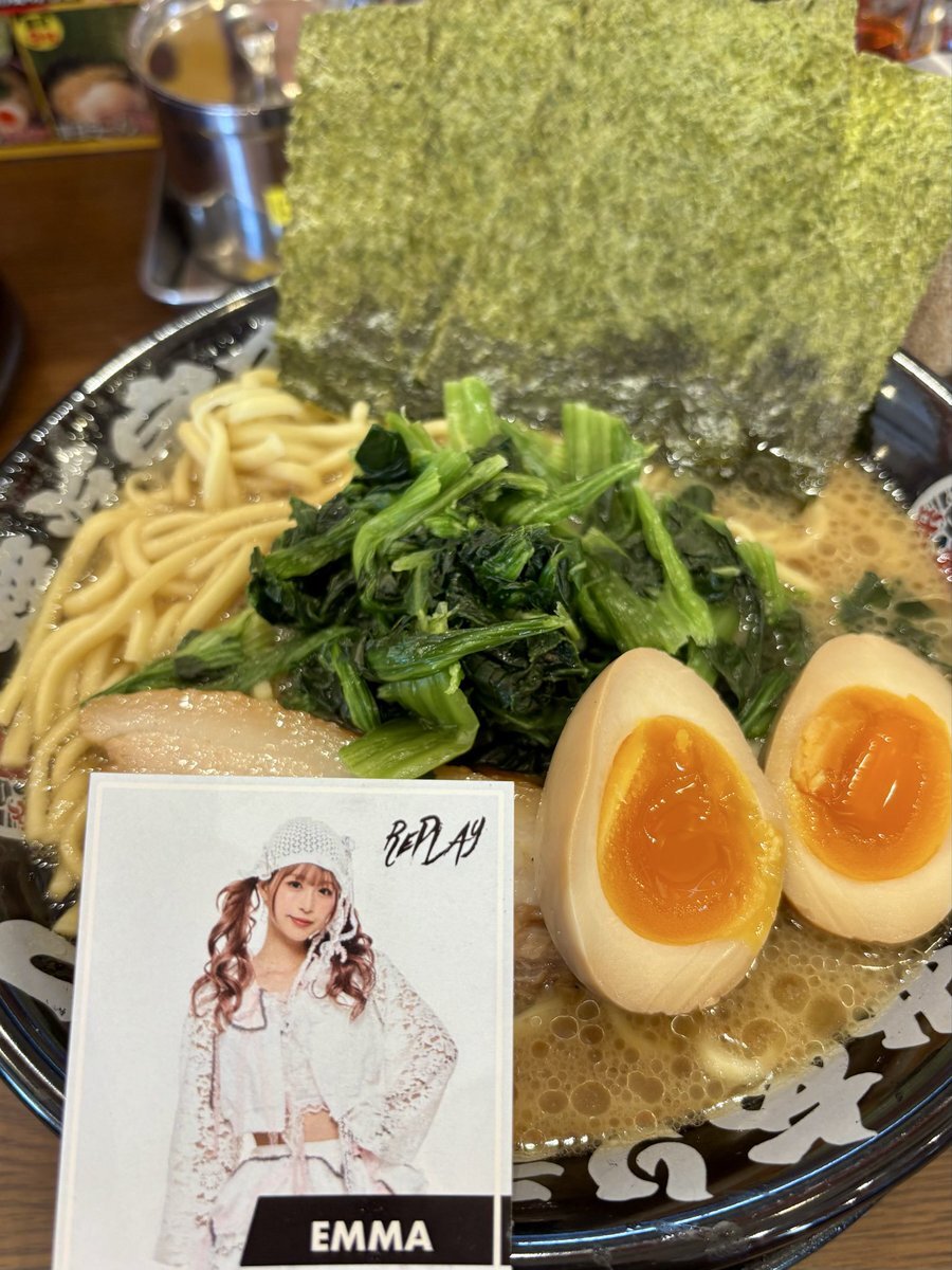 横浜家系ラーメン 辻田家 西川田店 味玉ラーメン ほうれん草マシ #Emma #えまちゃんとお散歩 #推しメンと推し麺 pic.x.com/2VFVEojQaO