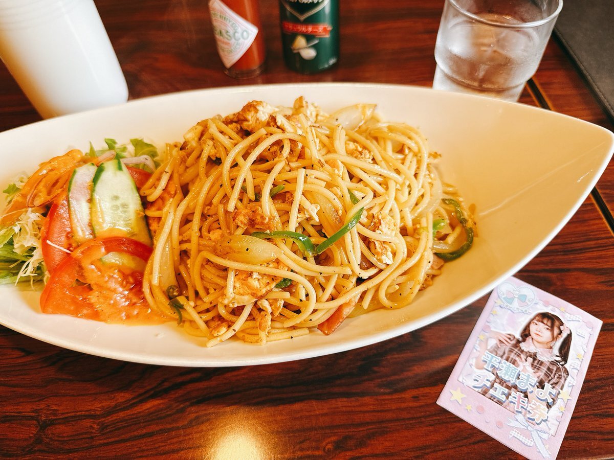 #推しメンと推し麺 氏家駅前のフェニックスの 特製フェニックススパゲティ大盛り 塩味良き #推しメン は財布に入ってた #もぐまよ pic.x.com/JPl2ZGTuo2