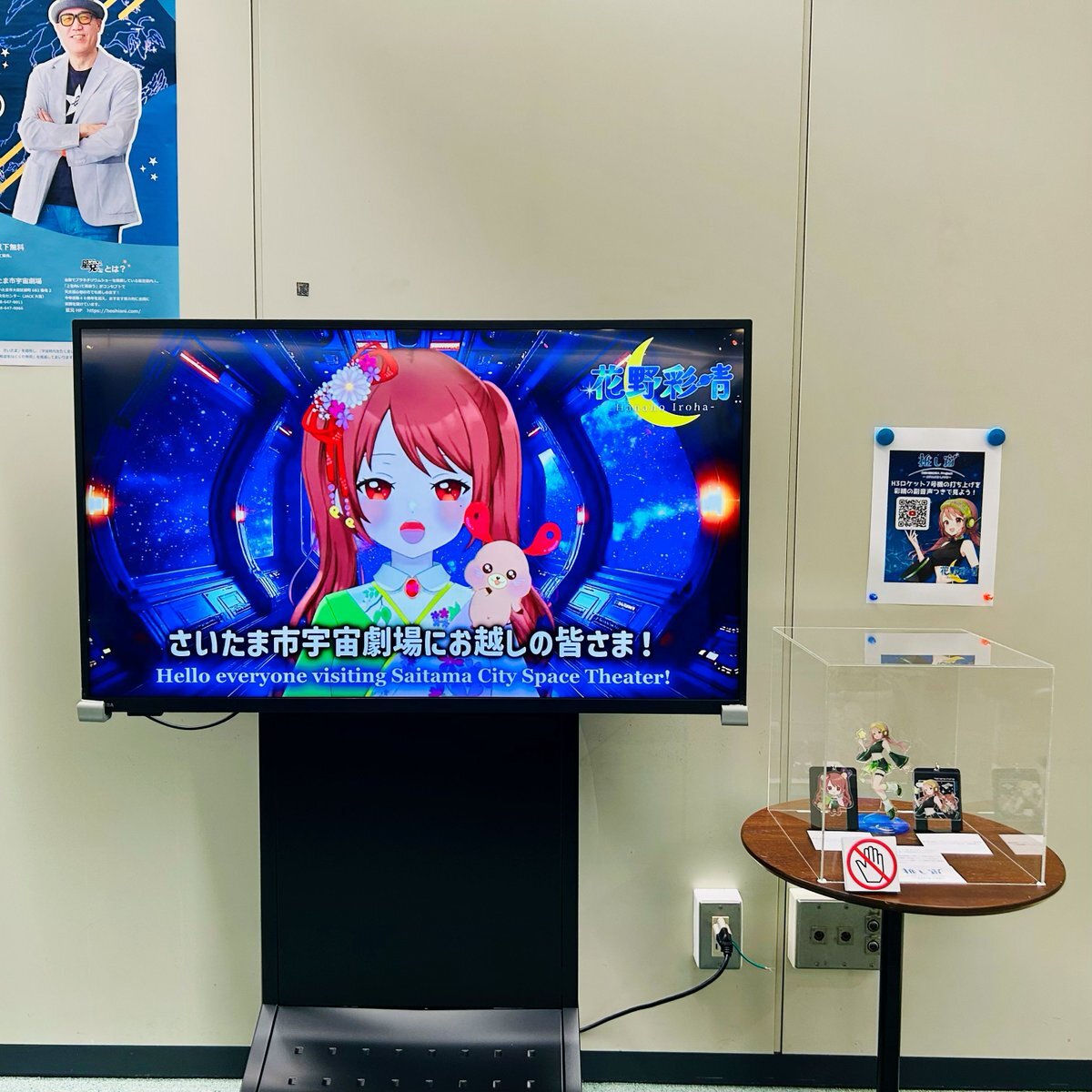 #推し宙スペースライブ #星見まどか まどかさん~推し宙仲間の 花野彩晴さんですよー さいたま市宇宙劇場では 11/3まで推し宙に参加している 埼玉県ご当地Vtuber花野彩晴さんの グッズが展示中です また設置されているモニターでは 花野彩晴さんによるコメント動画と pic.x.com/8oCOzFdYLX