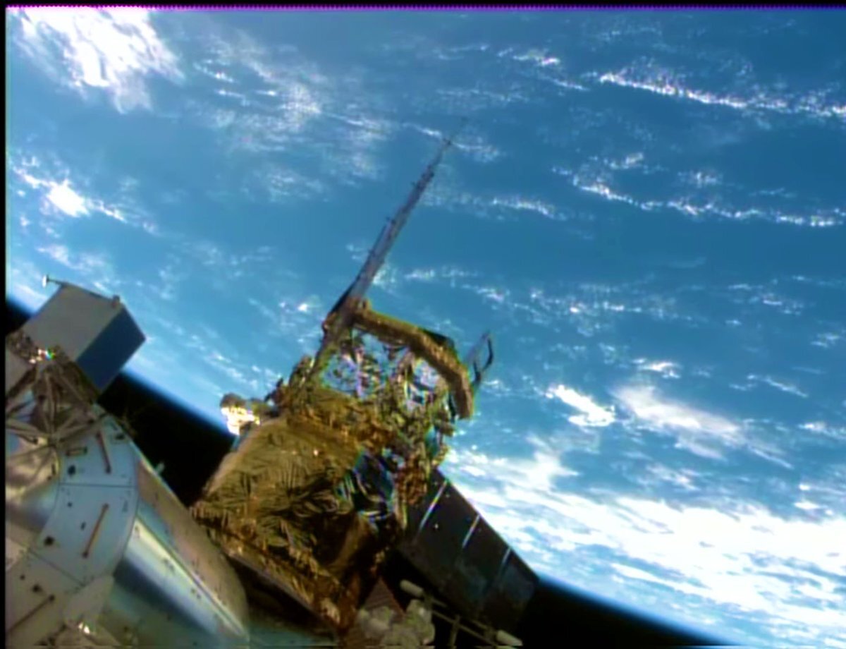 10月26日の打ち上げから3日と15時間余り #推し宙スペースライブ のVTuberグッズたちを載せた補給機が国際宇宙ステーションに到着しました 青い地球を背景に行われる緊張の把持作業 ここに芽唯ちゃん(概念)が載ってると思うと何とも不思議な気持ち #めいの庭 youtube.com/live/kvfZ7KGQL… @YouTube pic.x.com/pDi1stQhTW