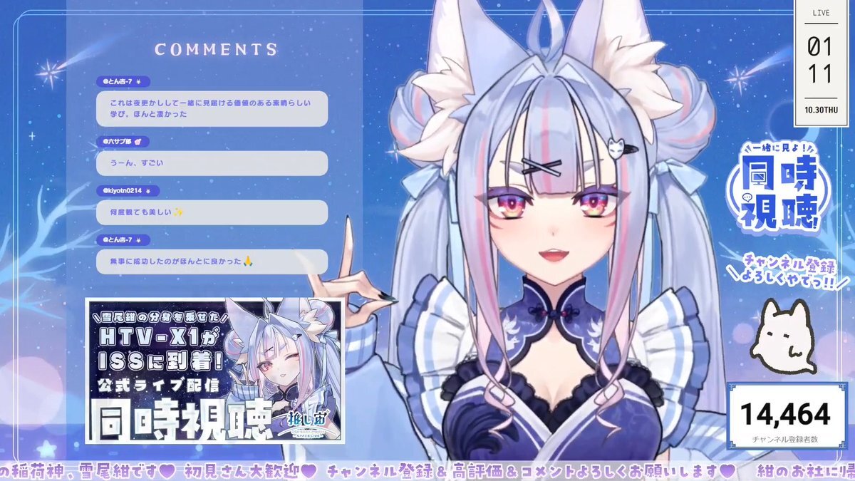 おいなりさんたちおはこんこん.ᐟ.ᐟ そして昨夜は突発ISS到着見守り配信 ありがとうございました🚀 ˊ˗ HTV-X、機体が金色にきらきら輝いて めっちゃ恰好良かったねぇ…✨✨ こんこんの分身が宇宙に居て、 皆と素敵な瞬間を迎えられてはぴでした♡ #推し宙スペースライブ #GoHTVX1 pic.x.com/zQydlr3onu x.com/yukiokon/statu…