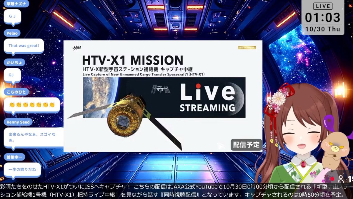 このあとは宇宙のお時間です。いよいよ私のアクリルパネルが国際宇宙ステーションに搭乗します! #推し宙スペースライブ参加中 HTV-X1号機 ISS国際宇宙ステーション 把持ライブ見守り配信 2025.10.30 【 #HTVX #GoHTVX1 #推し宙スペースライブ 】 youtube.com/live/5IROK2Ujq…