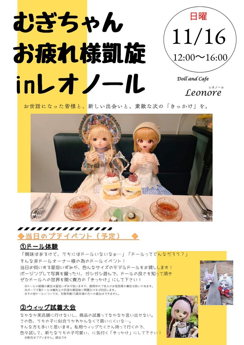 🫖岡山ドールカフェ🍃 🍁 #レオノール 🍁 11/16(日)むぎちゃん凱旋帰省だよぉ😆 皆さんのご来店お待ちしてます😄 #ドールカフェ #推し活カフェ @AndLeonore99306 x.com/hoshigaki_izum…