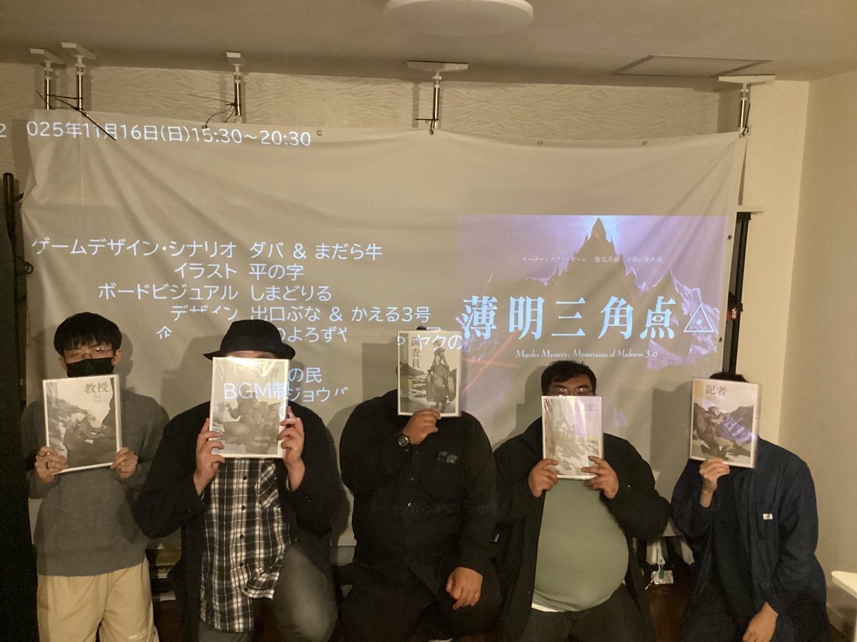 11月16日は『狂気山脈 薄明三角点』。GM【サンジョウバ】でのご案内でした。 ご参加いただいた皆様、ありがとうございました! #ライトアンドギーク #マーダーミステリー #マダミス #推理ゲーム #物語体験 pic.x.com/OFgtXWOBTT