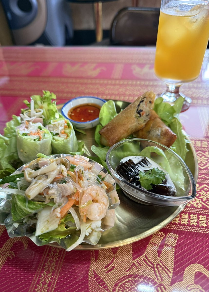 今日1食目は「#タイ料理カポン」さんで、トムヤムクンラーメンとサラダ代わりのカポン春巻きワンプレートセット♪ 春雨サラダのヤムウンセンが酸っぱ辛くて最高😋 #タイ王国料理 #トムヤムクンラーメン #今月8杯目 #カポン春巻きワンプレートセット #生春巻き #揚げ春巻き #ヤムウンセン #デザート pic.x.com/3BVp0Ju8gF