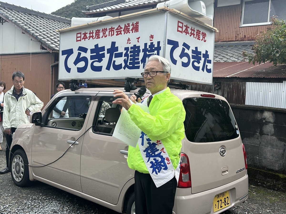 #てらきた建樹 (寺北建樹)日本共産党 #西脇市議会議員選挙 10月26日投開票日  16人定数で22人立候補の多数激戦 てらきたさんの出発式で応援演説させてもらいました。 フリースクールへの助成、体育館にエアコン設置などを実現し住んでよかった西脇市にするためには、てらきたさんの力が必要です
