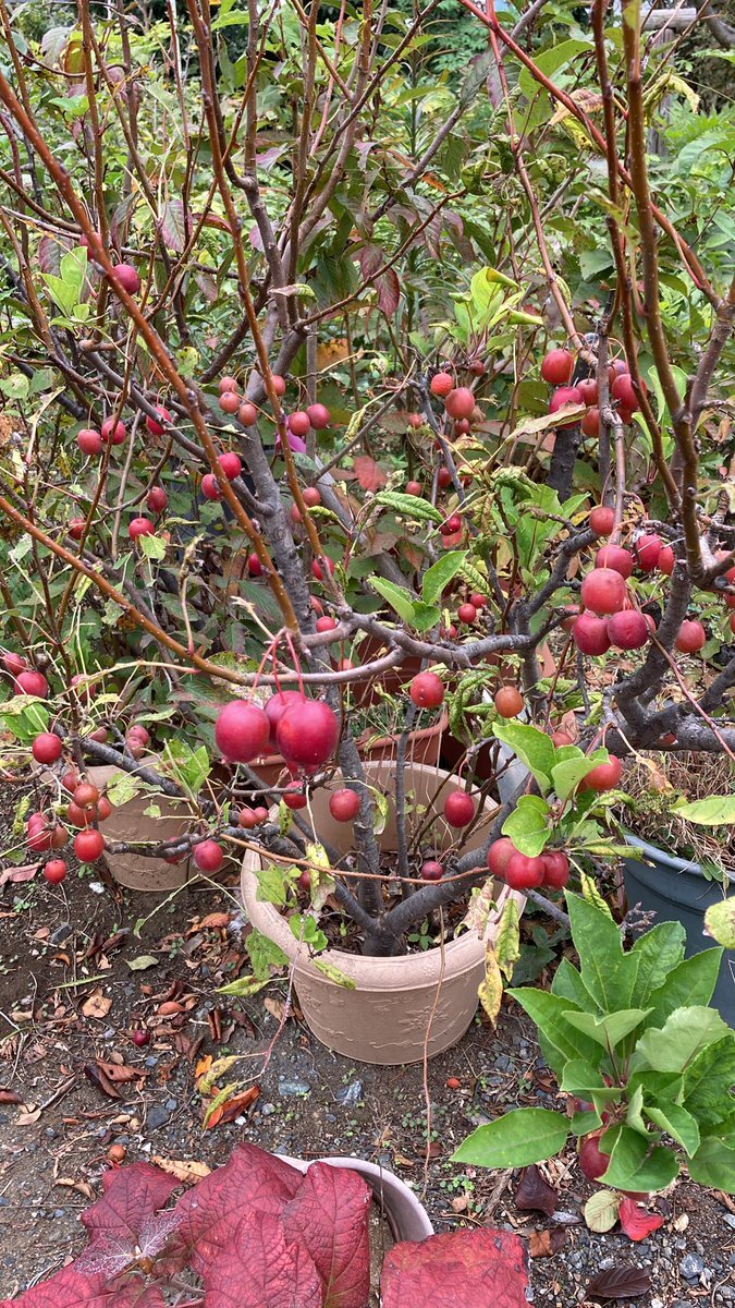 姫リンゴ🍎 鉢植えなのであまり 実がならないと思って ますが今年は成り年 でした👏👏 葉っぱは暑い時期に虫さんのご飯になってしまいました(>_<) 推し様🍎は元気かなあ #撮り徹 pic.x.com/oePJV2ItB2