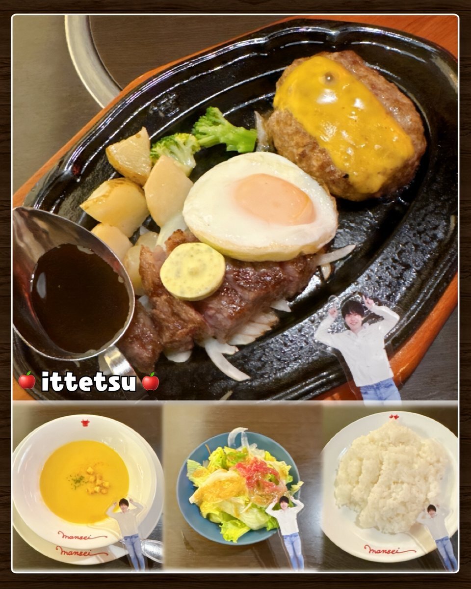 先日のディナー🍽️✨ 友だちがお肉🥩が食べたいとの事で、 『#肉の万世🐮』に行ってきました🚗 ³₃ 『カット霜降りステーキ70gと ハンバーグ180gの洋食セット🥩🥗🍴』✨ 黒毛和牛🐮だから❓ ステーキ🥩の脂が甘〜い♡😋 ボリューム満点💯めっちゃ美味しかったです💕 #撮り徹 #一徹くん pic.x.com/WQzA05sfvx