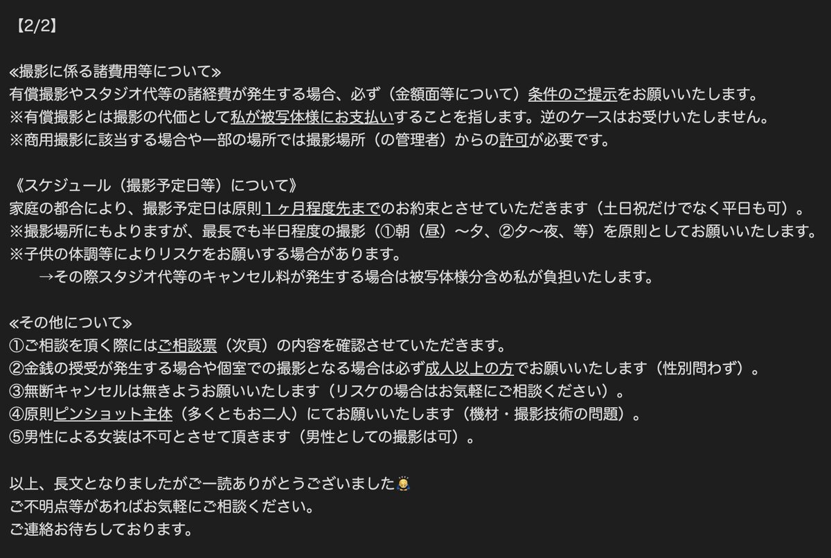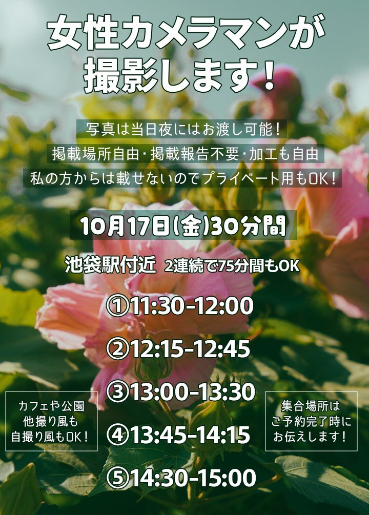 撮影依頼空き状況更新📝 10月中旬~11月までの撮影予定を掲載! 前日や急な依頼や写真集や企画用の納期もご相談ok📷 宣材写真や個人用もお気軽にDMください! 夜職向け撮影、短時間もokです✨ #カメラマンさんと繋がりたい #撮影依頼募集 #コスプレイヤーさんと繋がりたい pic.x.com/mDbbVHPvcI