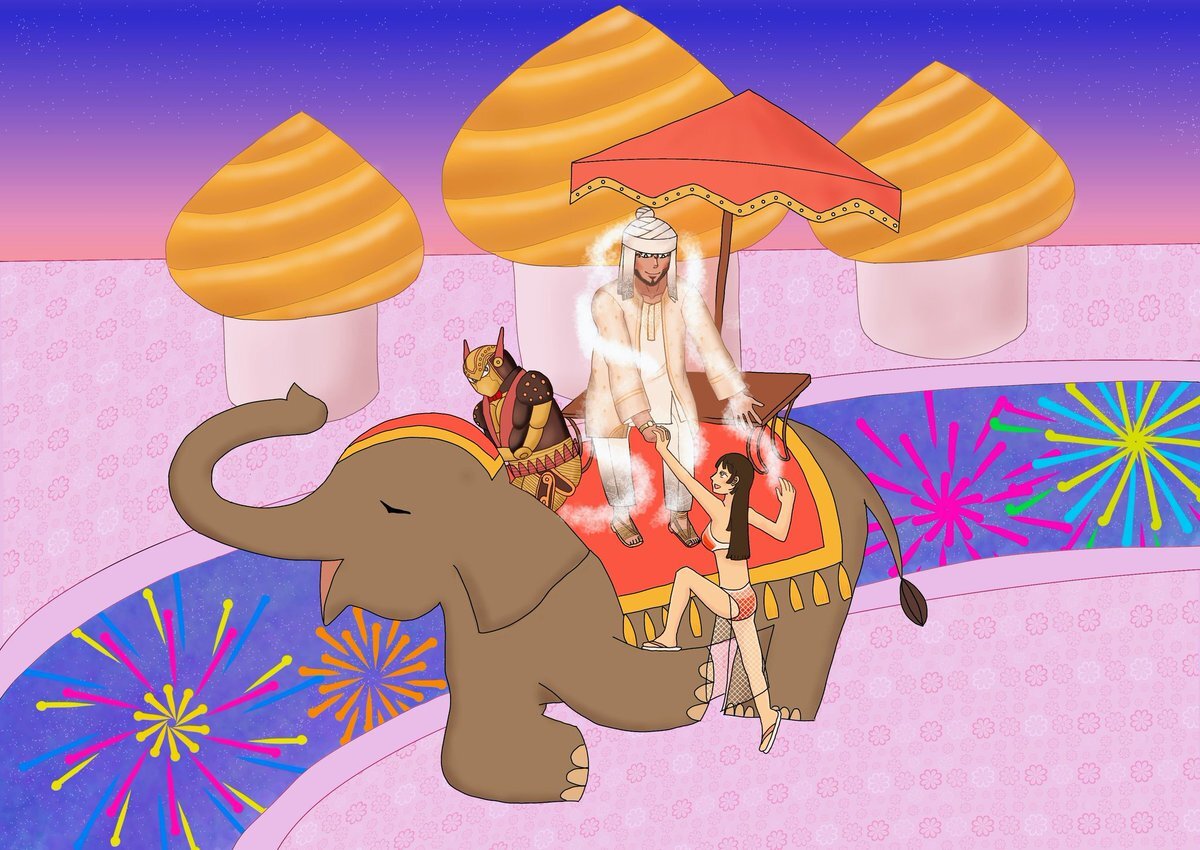 放サモ サマープール・トワイライト スモーキーゴッド×主2(スモ主2) 「象に乗るのは初めて?」 #放サモ #放サモファンアート #東京放課後サモナーズ #housamo #tokyoafterschoolsummoners wipは引用で pic.x.com/lx8HMk0HOI x.com/romushiru/stat…