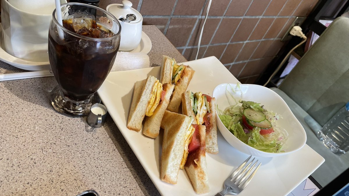 🥞朝食🥣は京都府『喫茶軽食薔薇』さん。10月28日(火曜日) 一人で。お客様訪問前。 #放浪記 #モーニング #サンドイッチ #京都市グルメ #アイスコーヒー pic.x.com/vpy4CDvSXf