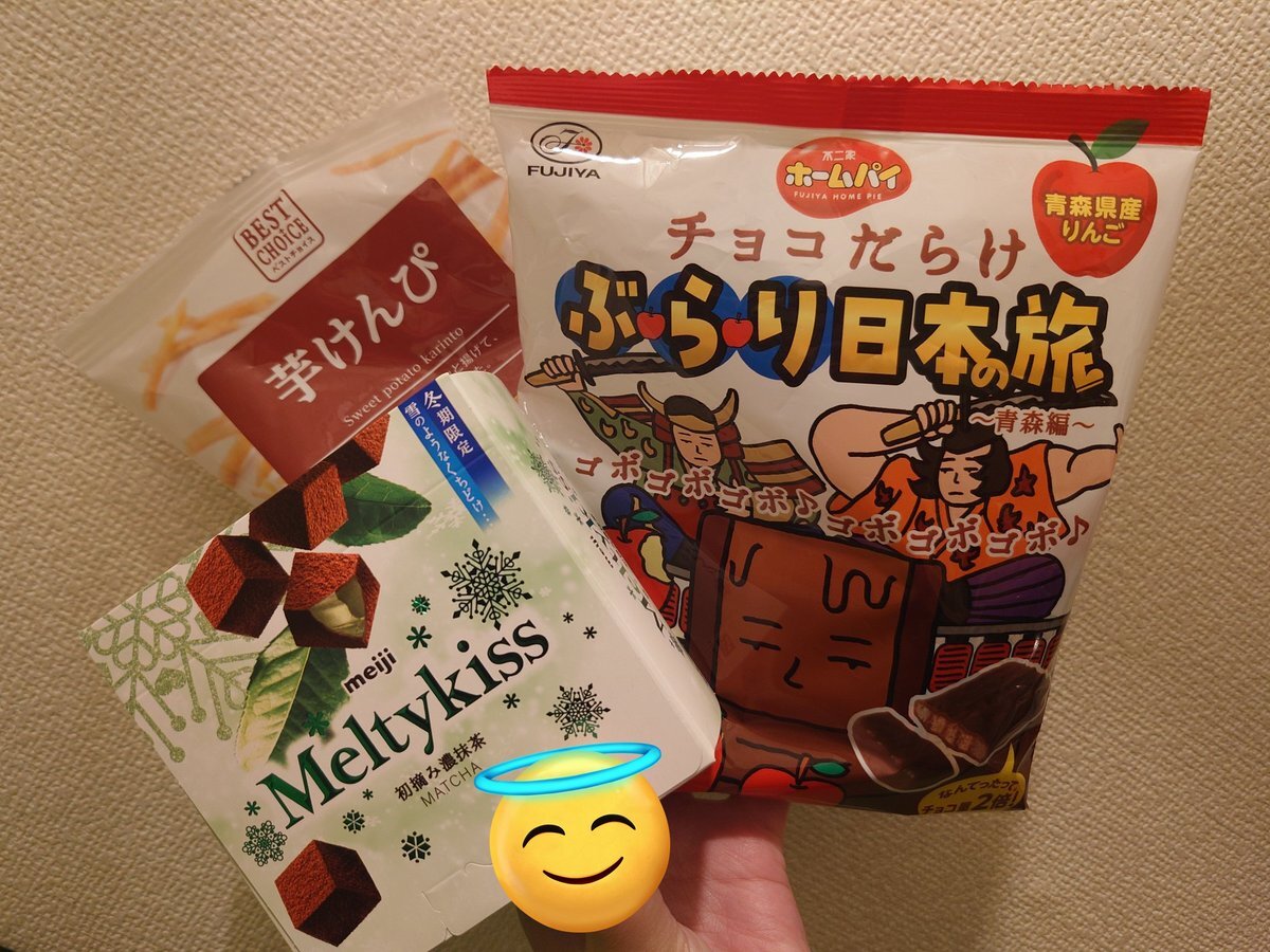 @0 今日買ったお菓子。 雪のよーうな〜くちー……どけ〜☃️ (がっきー戻ってきて🥺) 焼き鳥はまた今度!!!! 芋けんぴ取り急ぎ食べた美味しかった🍠 てわけでアソビ大全アーカイブ見てるおもしろい #放籠配信 #五つ葉探し pic.x.com/RTkcbBMSd1