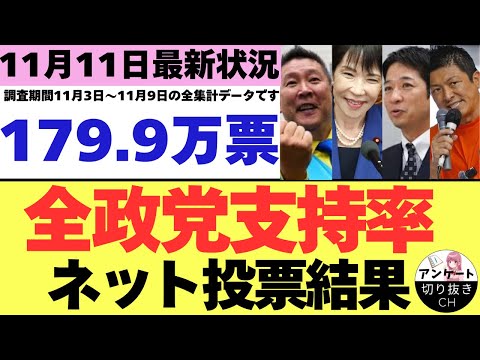 【11/11最新調査】 全政党支持率179.9万票ネット投票 コレは草🌱 えーっと立憲、共産の支持率1%って何のギャグだよwwwwww 組織票ないとこんなもんか?と思ったけど、今の国会見てたらそらそうだとしか言えんわな🤪 #政党支持率 youtu.be/f8gW-KiqgoI?si…