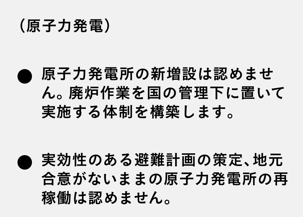 これは立憲民主の2025参院選政策だけど、結党時より原発容認的な考えになってる。国民民主は新増設賛成だけど、避難計画等安全と認められた原発から再稼働という点で合意点は見いだせるはず。 x.com/izmkenta/statu…
