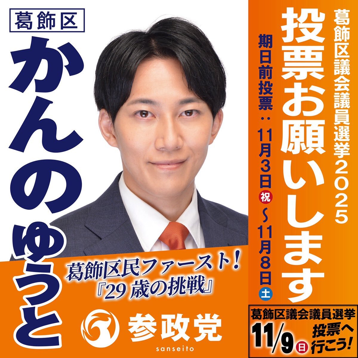 葛飾区民ファーストとかこんなにも嬉しいことないだろ、、 #参政党 #葛飾区議会議員選挙 #かんのゆうと #選挙に行こう #政治に参加しよう #拡散希望 x.com/kLLL666LLLo/st…