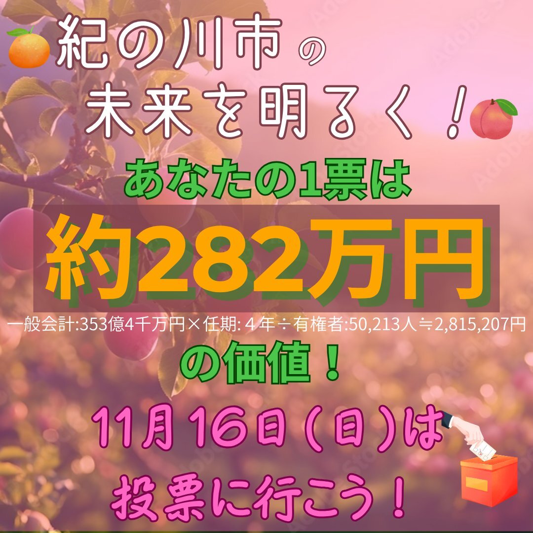さぁ!やっていきましょ! 紀の川市の皆様!明日16日(日)は市議会議員選挙の投票日です! 1票の重さはなんと!約282万円もの税金の使い道に相当します! 15分程度で終わるのに、投票しないなんてもったいない!ぜひ投票に行きましょう! #紀の川市 #市議会議員選挙 #政治に参加しよう pic.x.com/gIPWj8jUUw