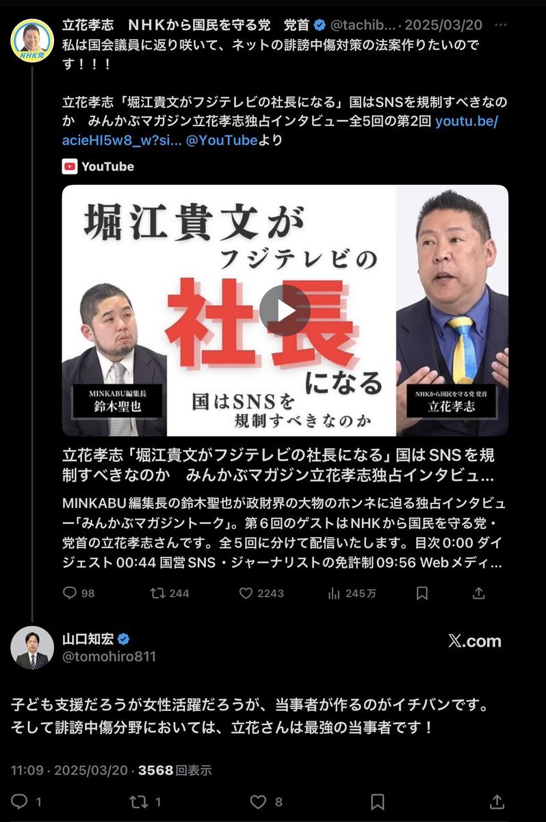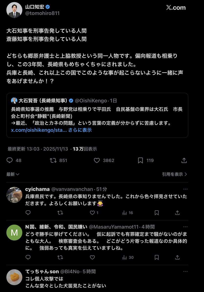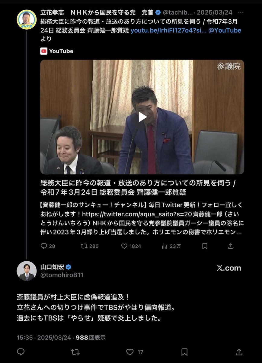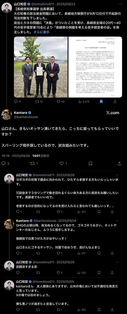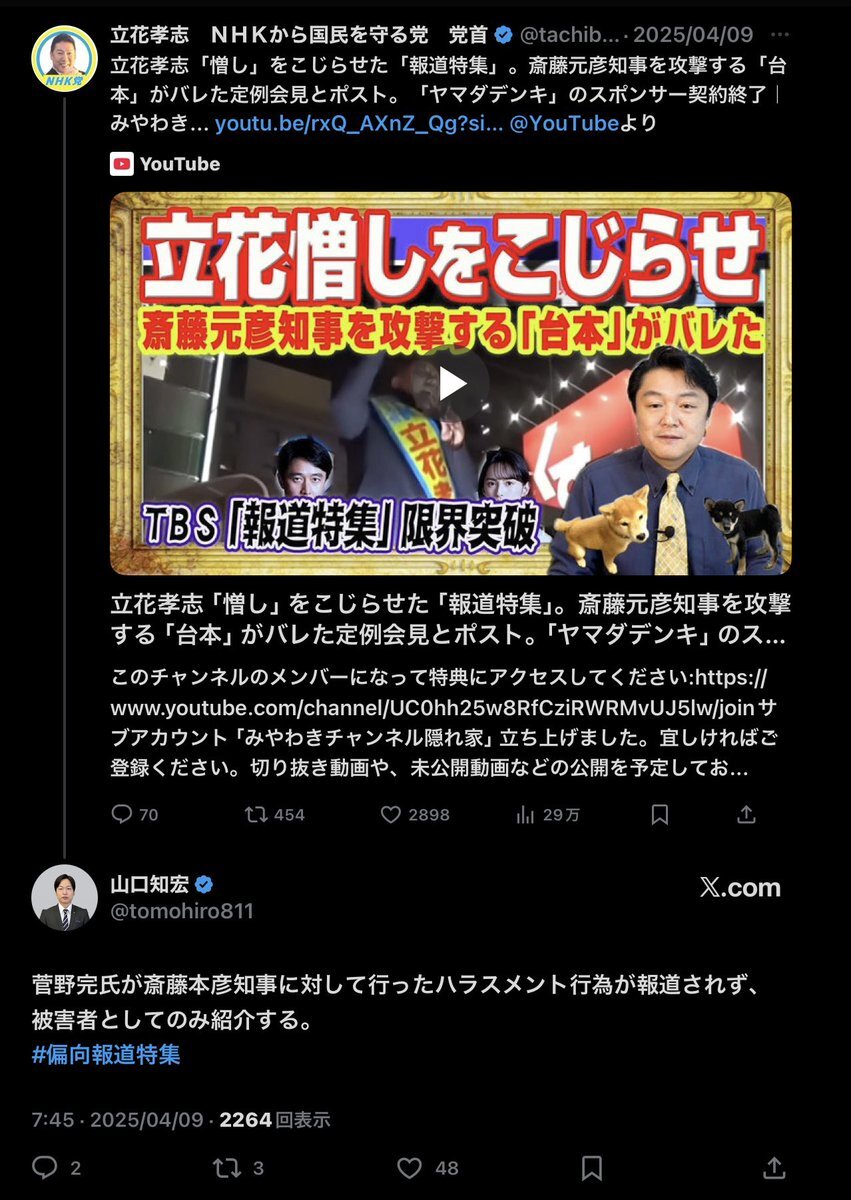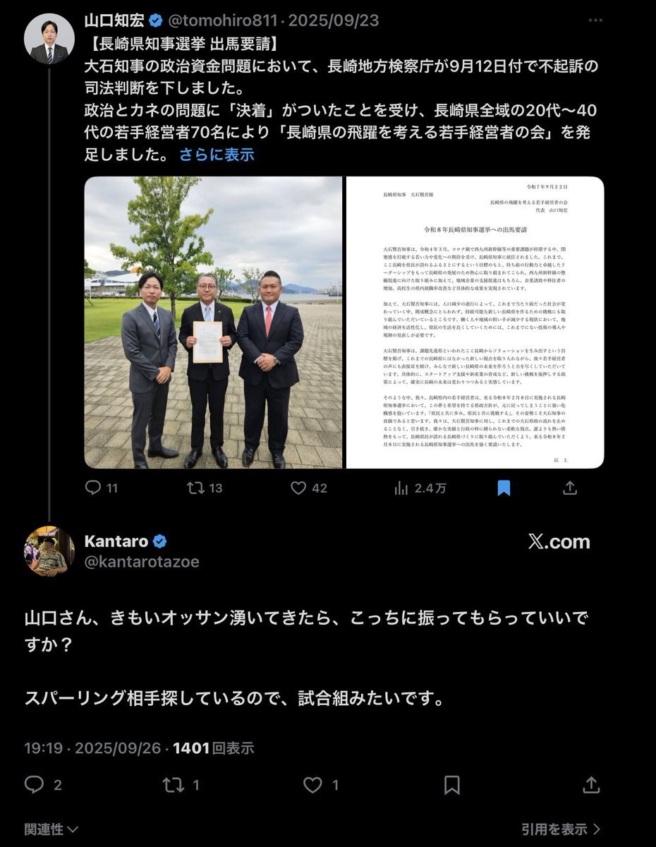 #立花孝志 は #大石賢吾 応援団の山口氏の推しだったみたいなのにねぇ😭 #長崎県知事選 #大石知事 #政治資金問題 pic.x.com/8SmkjcI6QC x.com/methuselah_2/s…