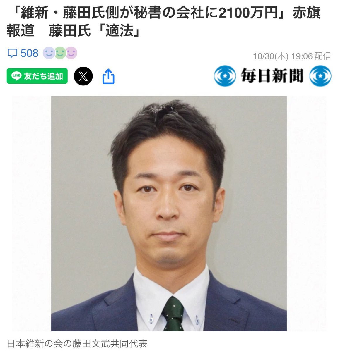 【更新通知】【悲報】維新藤田代表、公金2000万円を自分の秘書の会社に使っていたw w w w w w w w w w w w w w w #日本維新の会 #政治とカネ #政治資金問題 itainews.com/archives/20548…