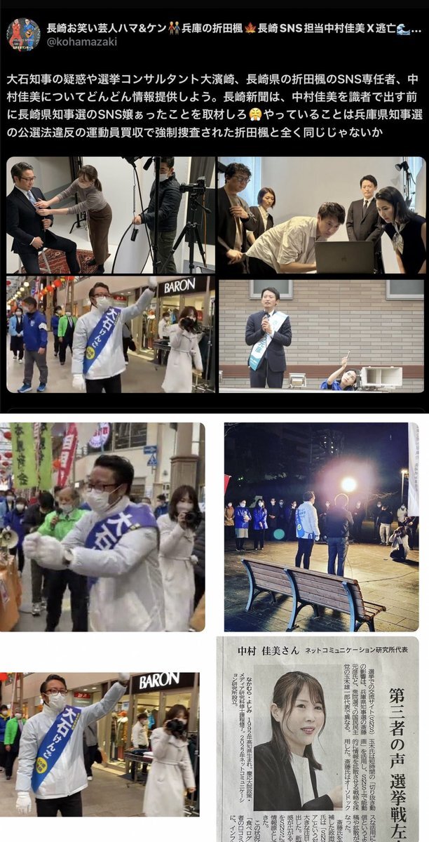 大石知事を自民党長崎県連や長崎県議らが知事選で支援しないなら百条委員会を開催すべきだ。長崎地検から捜査中を理由に参考人招致をバックれていた選挙コンサルタント大濱崎や長崎県の折田楓、中村佳美も県議会に出席すべき。大石知事は、記者会見で選挙コンサルタントには説明してほしいと言っていた x.com/koishikengo/st…