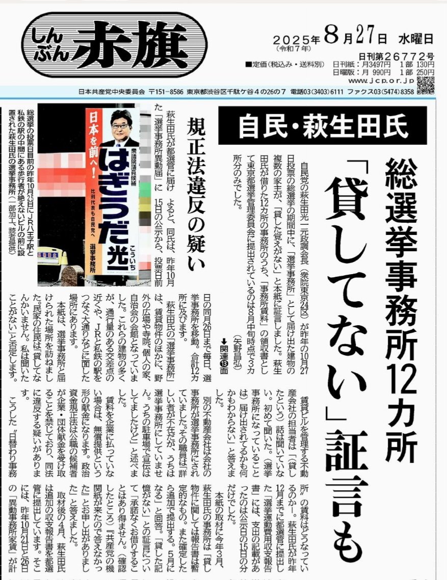返信先:@jimin_koho刑事告訴されたことがある人でも 総裁選に出馬できるんですね 自民党、やべーな(笑) 製氷会社から900万円の違法献金で #政治資金規正法違反 で刑事告発されてる 検察は10月に不起訴にしたが、千葉県第2検察審査会で「起訴相当」の議決を出したが 時効まで起訴せず終了 asiapress.org/apn/2024/12/ja…