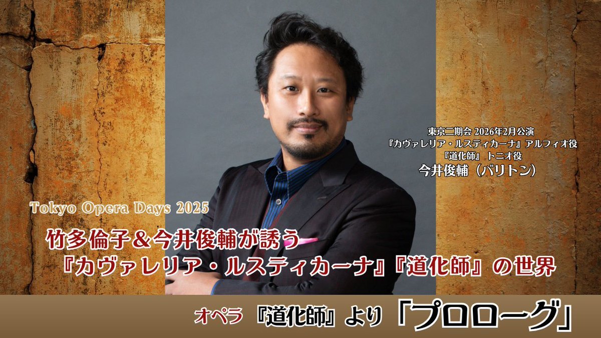 圧倒的な存在感と深みある声—— バリトン今井俊輔が歌い上げる 『道化師』より「プロローグ」、ぜひご覧ください! 今井俊輔は、東京二期会2月公演 『カヴァレリア・ルスティカーナ』『道化師』に出演 どうぞお見逃しなく! ▼歌唱動画 youtu.be/b-xp_4ztKWI ▼チケット s2.e-get.jp/nikikai/pt/