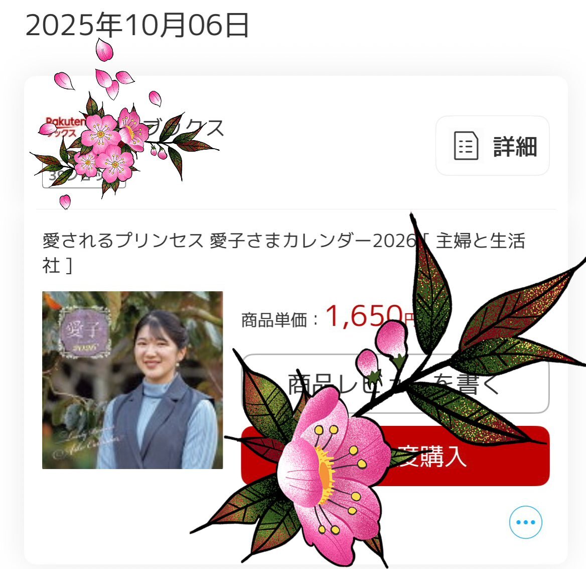 あまり宮さまについてポストすることないんですけど、嬉しさのあまり、伝えさせてください…🙏 今日の朝、チェックしたら在庫あったので即予約できました!!遅くても来月あたりには宮さまカレンダーが手元に届くと思うと、ワクワクです✨✨✨ #敬宮さま #敬宮愛子内親王殿下 #愛子さまカレンダー pic.x.com/DGn7K0lOto